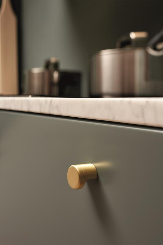 Gałka meblowa o delikatnym geometrycznym kształcie.
