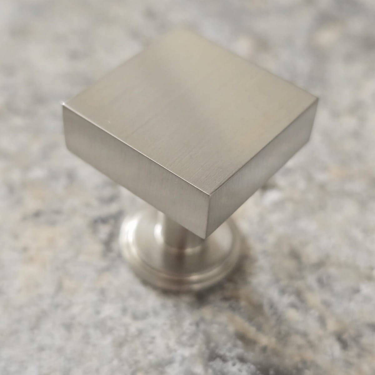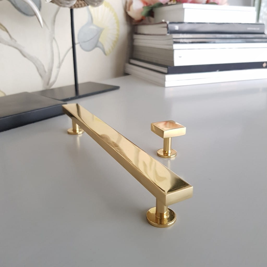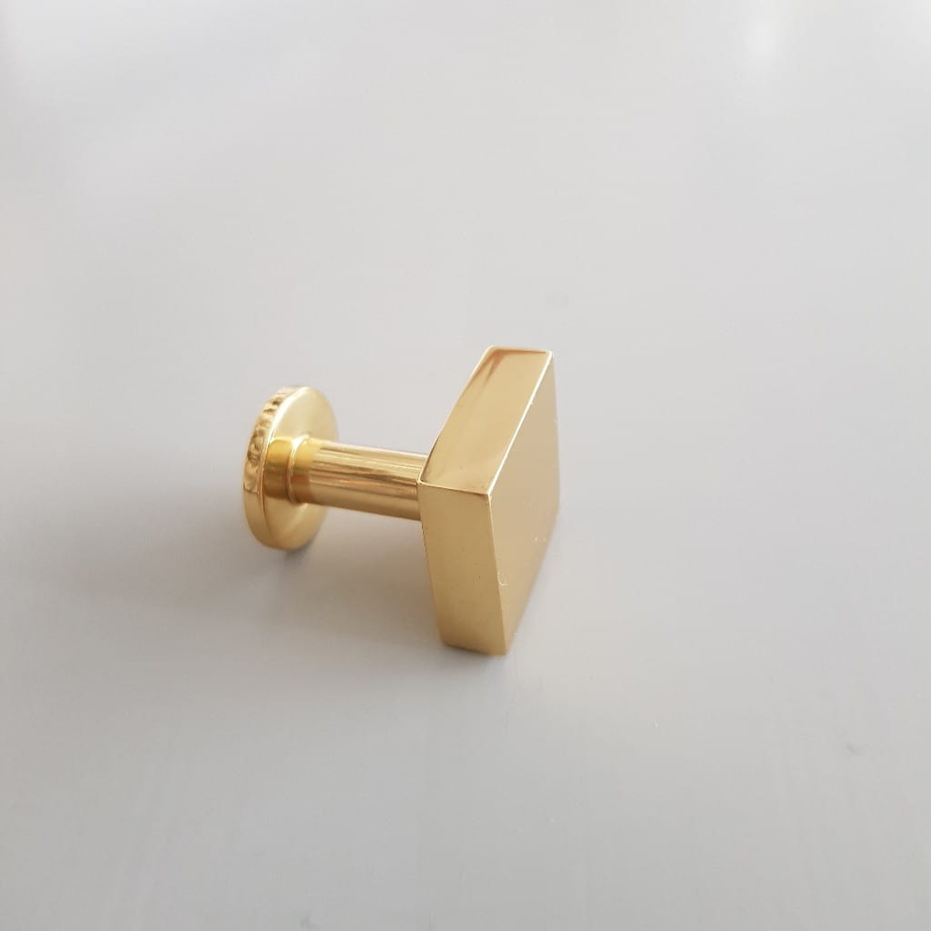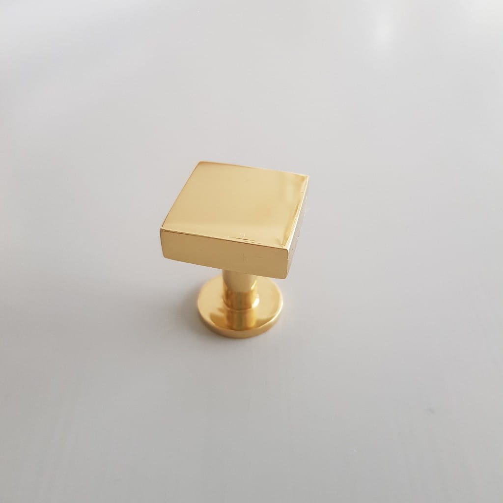 Prosta w formie gałka meblowa na delikatnej stopce z kwadratową główką. Uchwyt wykonany w polskiej manufakturze mosiądzu.