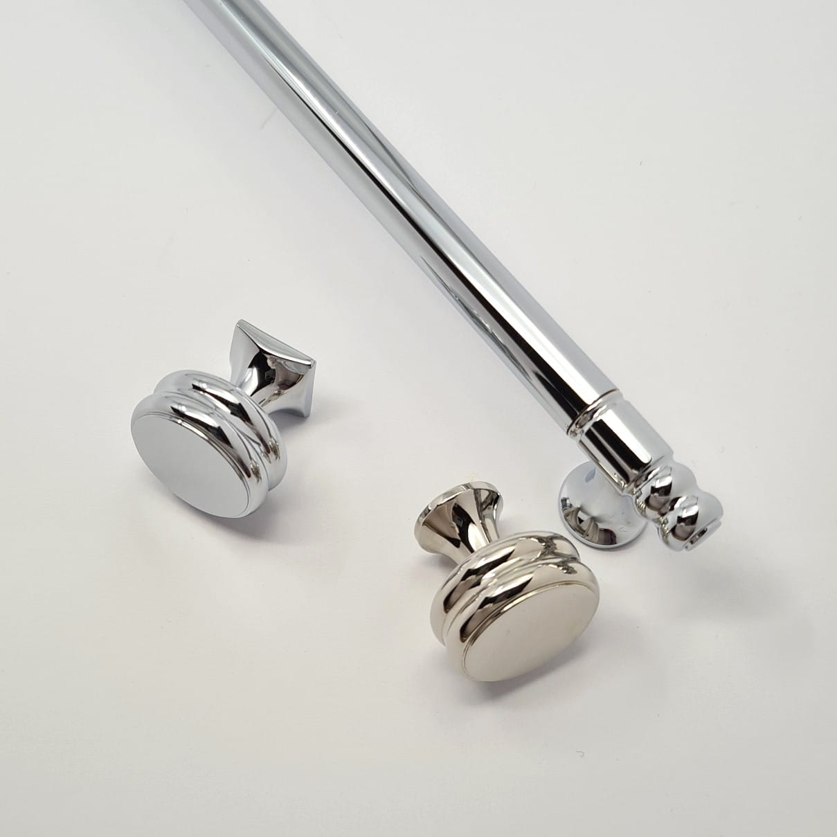 Elegancka forma i ozdobne przetoczenia na bokach gałki tego uchwytu gałki meblowej, sprawdzi się zarówno w klasycznych, jak i nowoczesnych wnętrzach. Może być stosowany do szuflad oraz do frontów otwieranych w każdym pomieszczeniu.