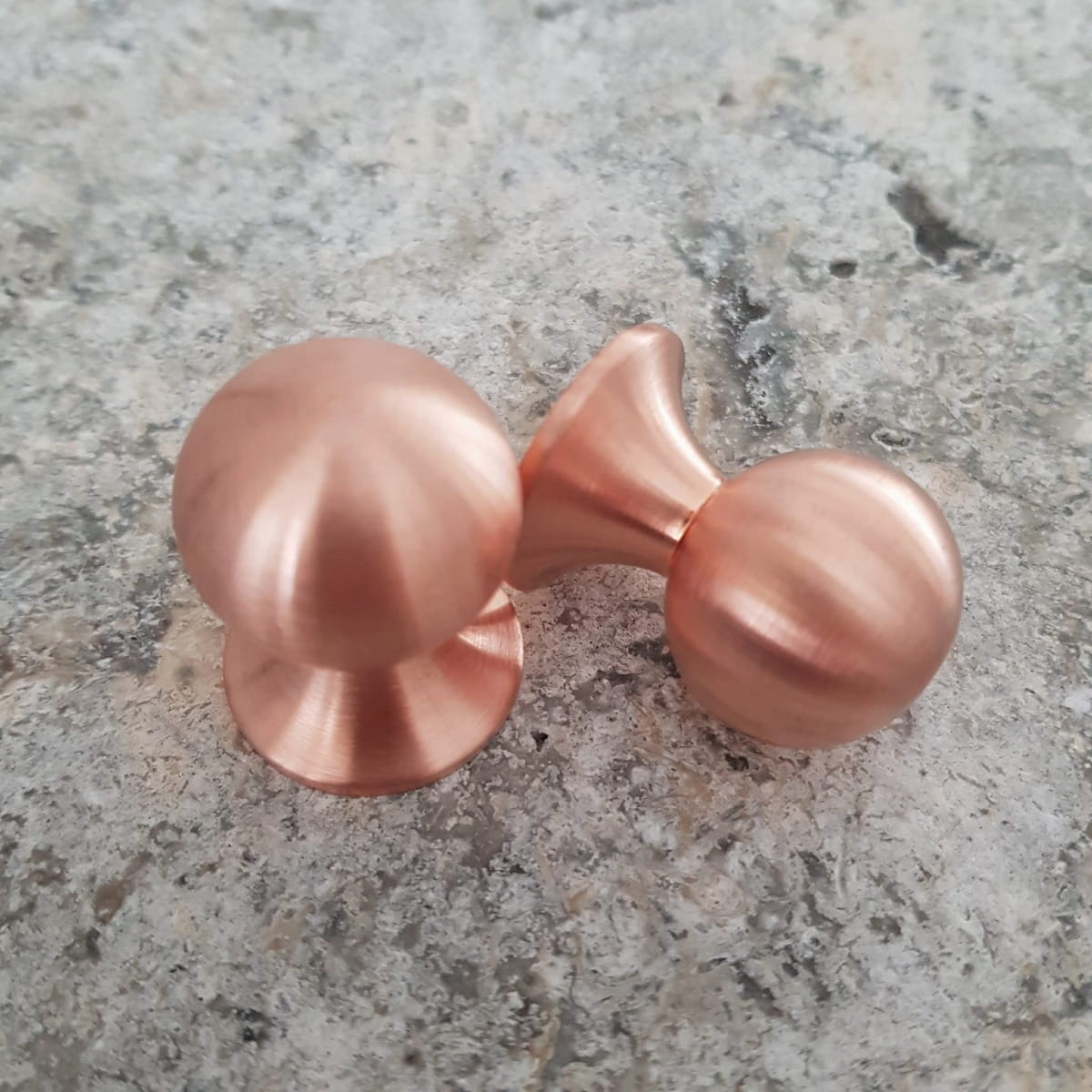 Gałka o kształcie kuli na toczonej lejkowej podstawie.