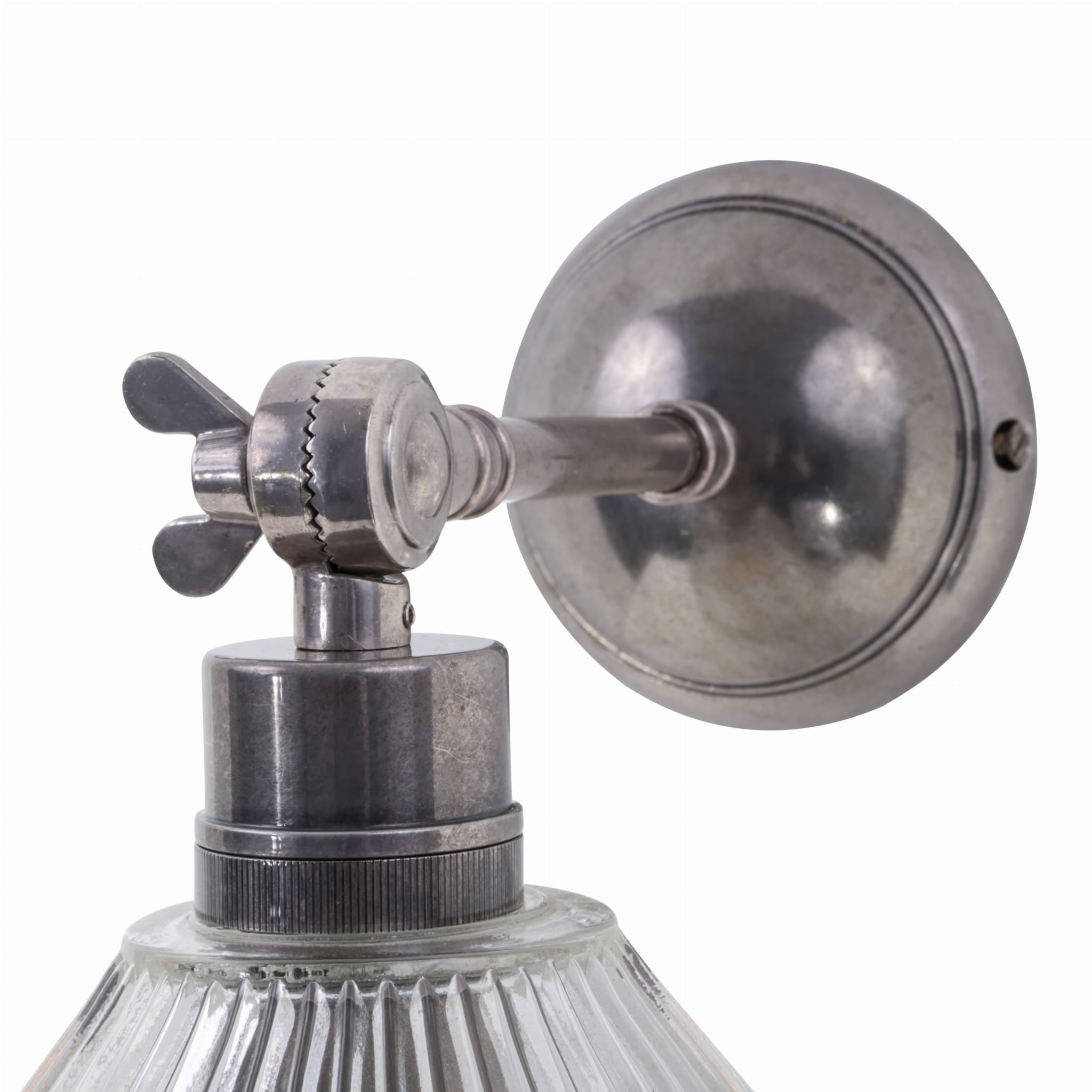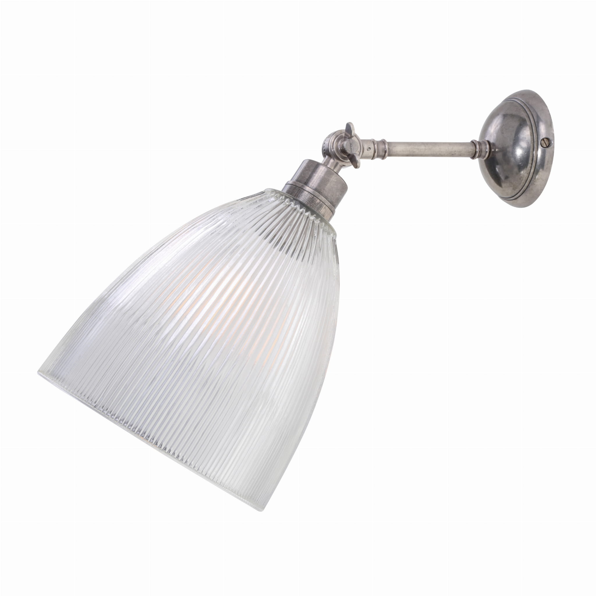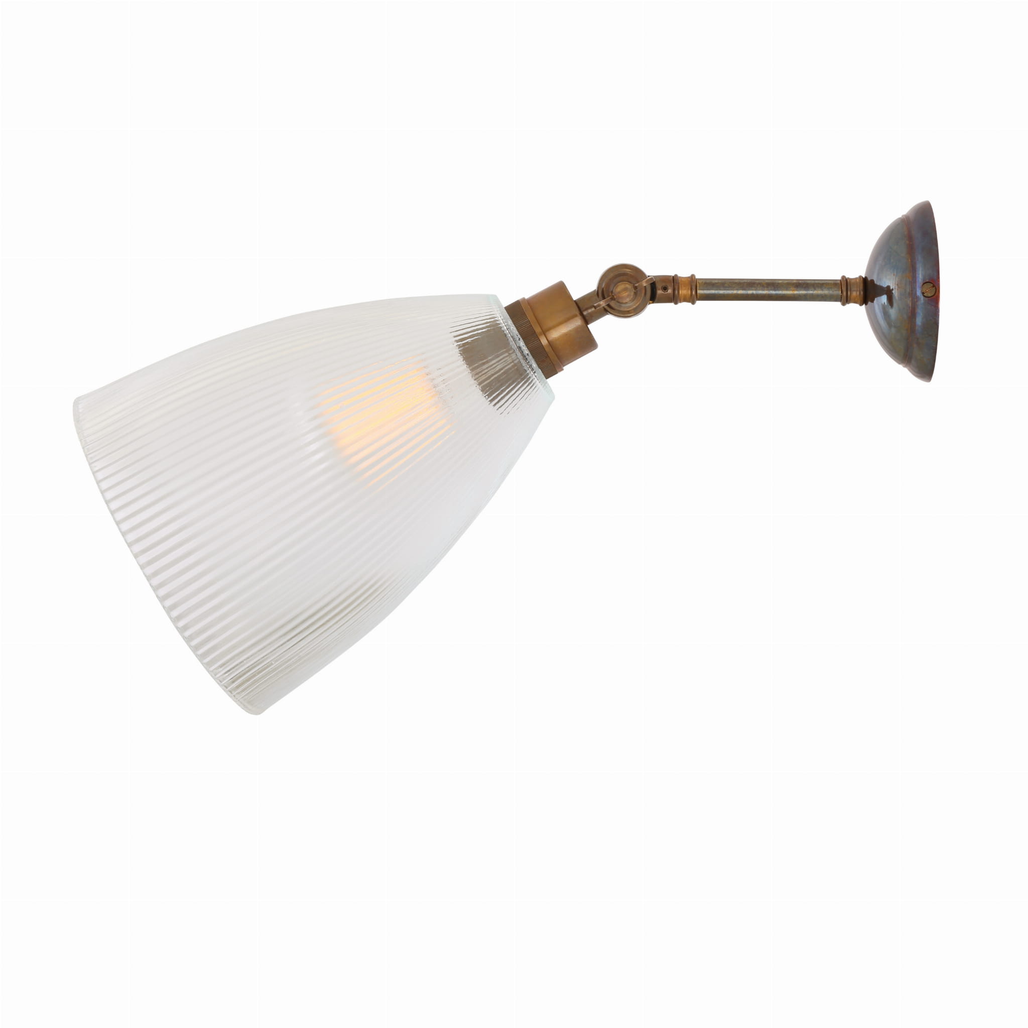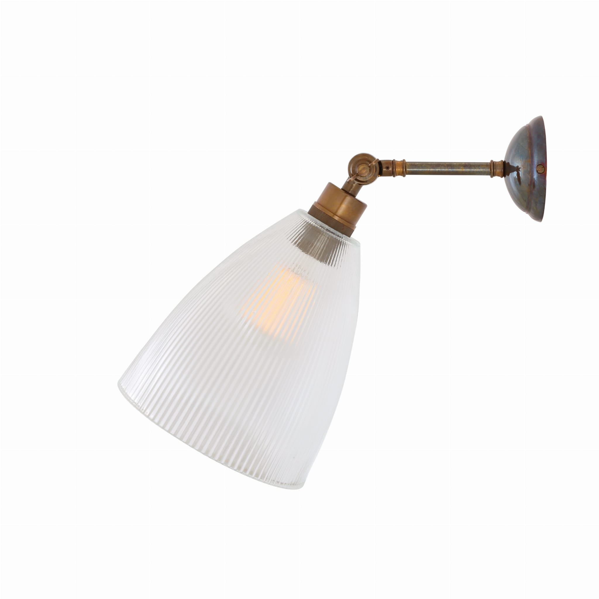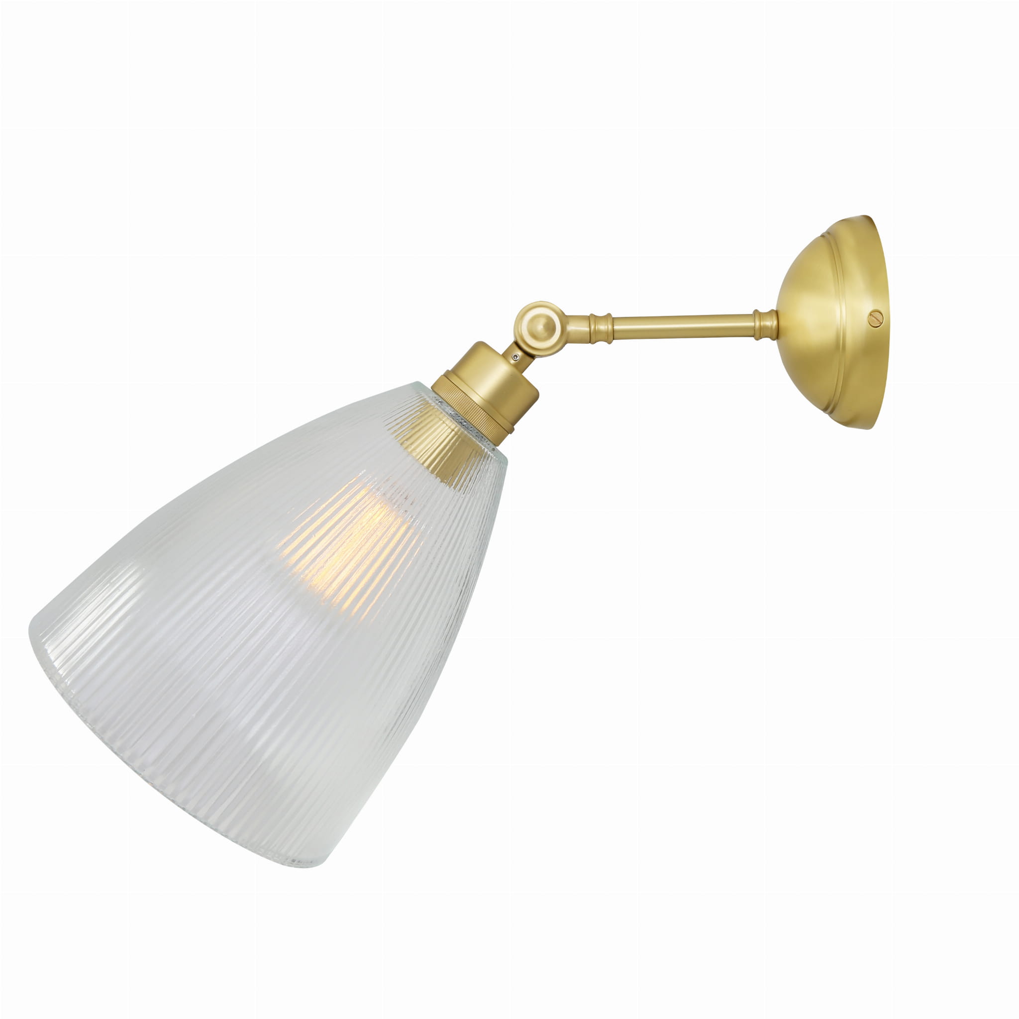 Kinkiet Hale to efektowne oświetlenie pasujące do każdego wnętrza. Posiada regulowane mosiężne ramie, które pozwala na regulację światła. Występuje w czterech kolorach wykończenia: polerowanym lub satynowym mosiądzu oraz antycznym srebrze i mosiądzu. Posiada ozdobny szklany klosz.