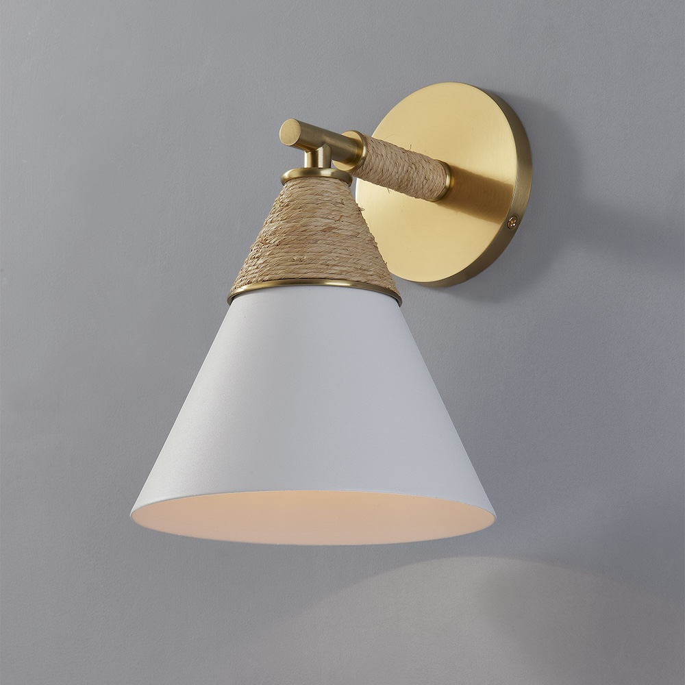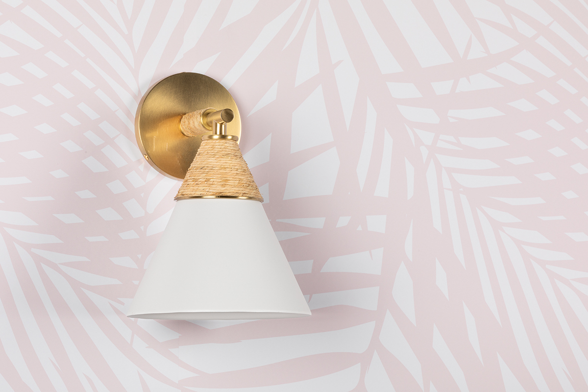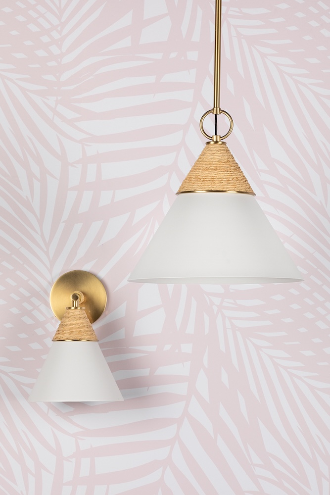 Łącząc nadmorski urok z cichym luksusem, kinkiet Mica emanuje delikatnym blaskiem. Jego smukła sylwetka podkreślona jest owijaną rafią, co nadaje jej naturalny charakter. Klosz kierunkuje światło, które odbija się od metalowej oprawy w kolorze białym.