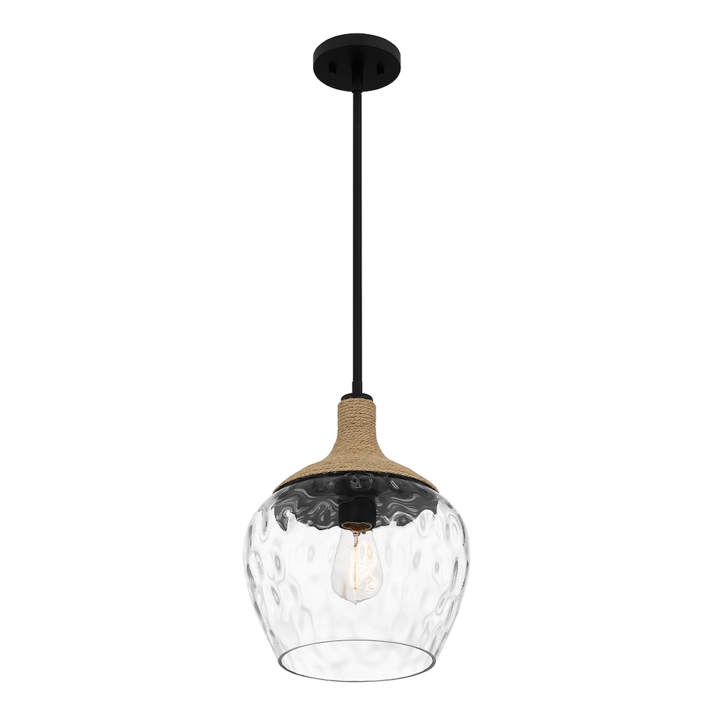 Lampa wisząca Royer czarna to elegancka forma w czerni, połączona ze szkłem i elementem liny. Emituje miękkie, przyjemne światło, idealne nad blat kuchenny, wyspę lub stół.