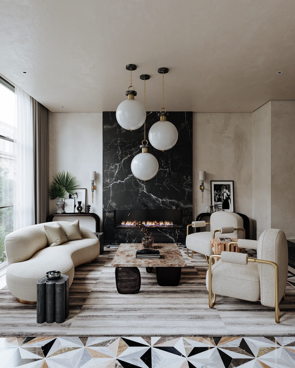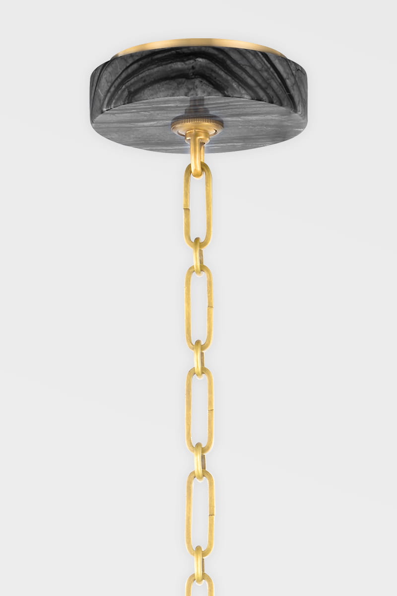 Lampa wisząca z kolekcji Haru to połączenie idealnego kształtu kuli z wyrafinowanymi materiałami, które tworzą piękny i efektowny projekt oświetlenia wpasowującego się zarówno w styl nowoczesny jak i przejściowy. Oprawa lampy wykończona jest w kolorze antycznego mosiądzu w połączeniu z marmurowymi wstawkami. Lampa Haru posiada szklany opalowy klosz, który w piękny sposób zmiękcza i rozprasza światło.