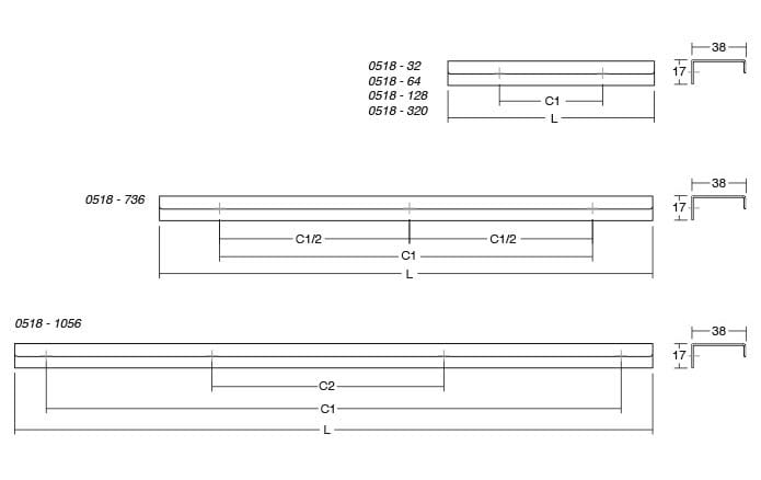 Uchwyt meblowy w typie listwowym wykonany z aluminium. Dostępny w 5 rozmiarach oraz wielu kolorach.