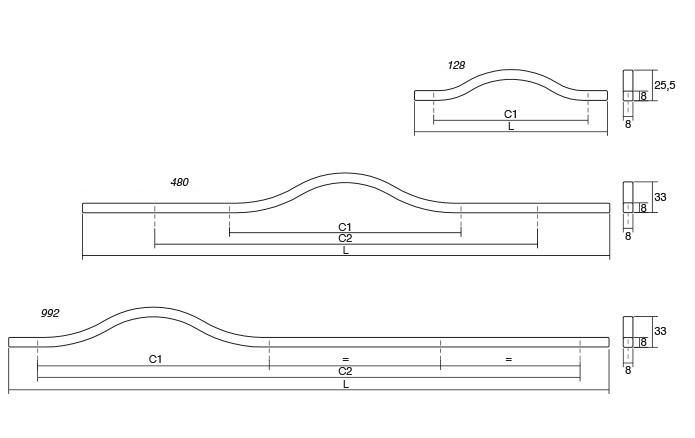 Reling meblowy Becket w kilku wykończeniach o rozstawie 128 mm doskonale sprawdzi się jako uchwyt do szuflad lub otwieranych frontów.