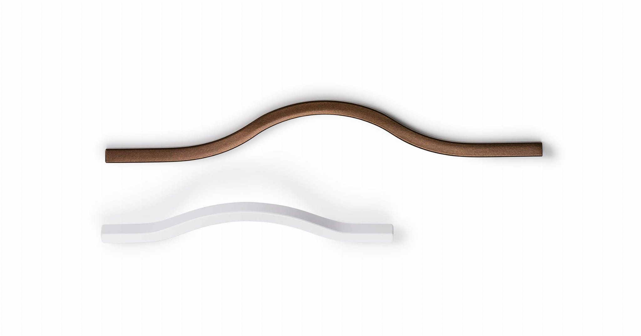Reling meblowy Becket w kilku wykończeniach o rozstawie 128 mm doskonale sprawdzi się jako uchwyt do szuflad lub otwieranych frontów.