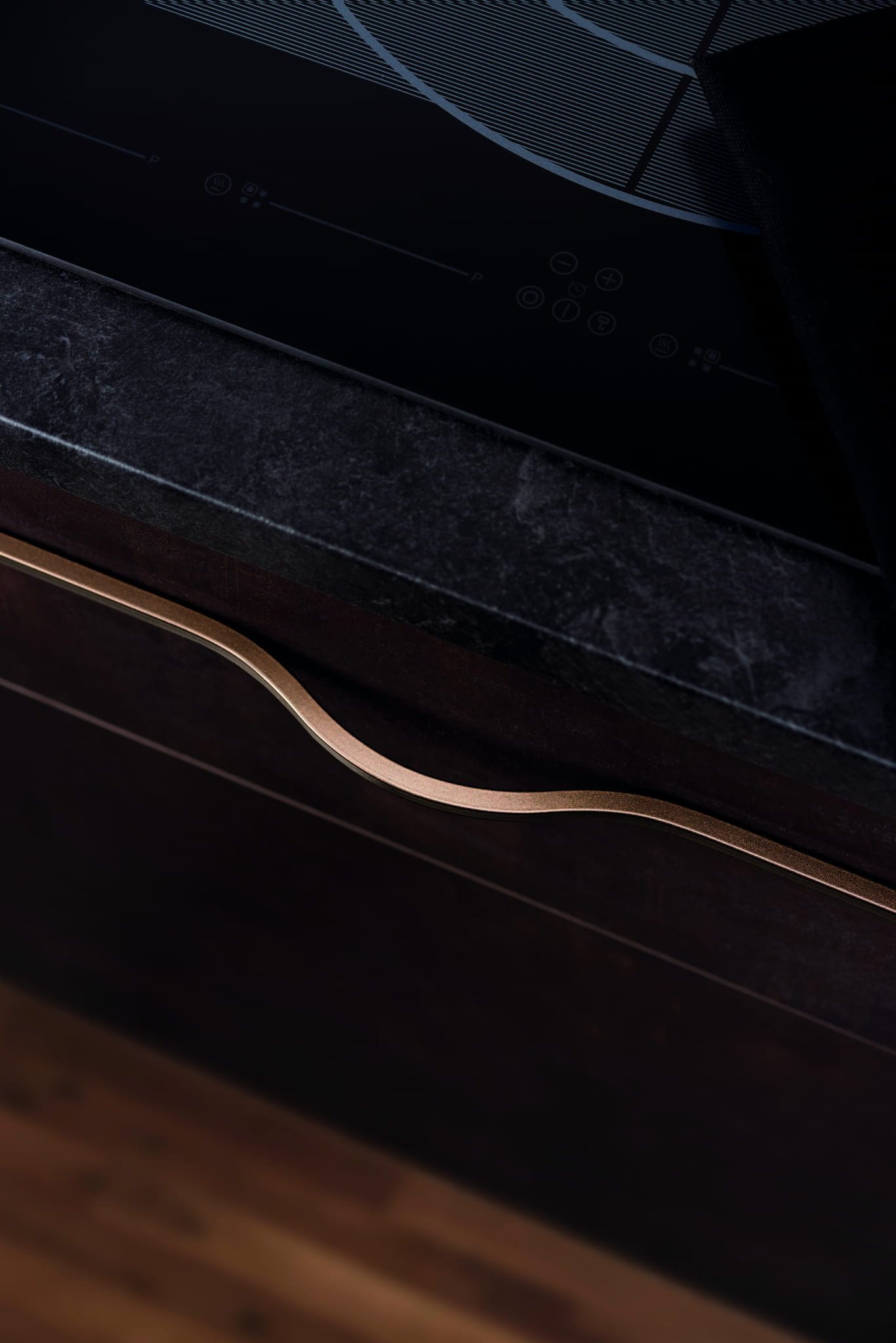 Reling meblowy Becket w kilku kolorach o rozstawie 480 mm doskonale sprawdzi się jako uchwyt przy wysokich frontach.