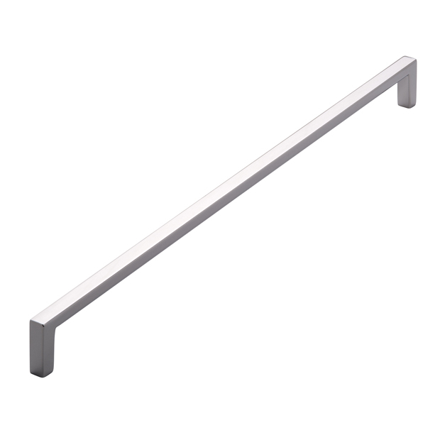 Prosty uchwyt meblowy w kolorze czarnym matowym, z bardzo ergonomiczną rączką, przyokrągloną od strony wewnętrznej.