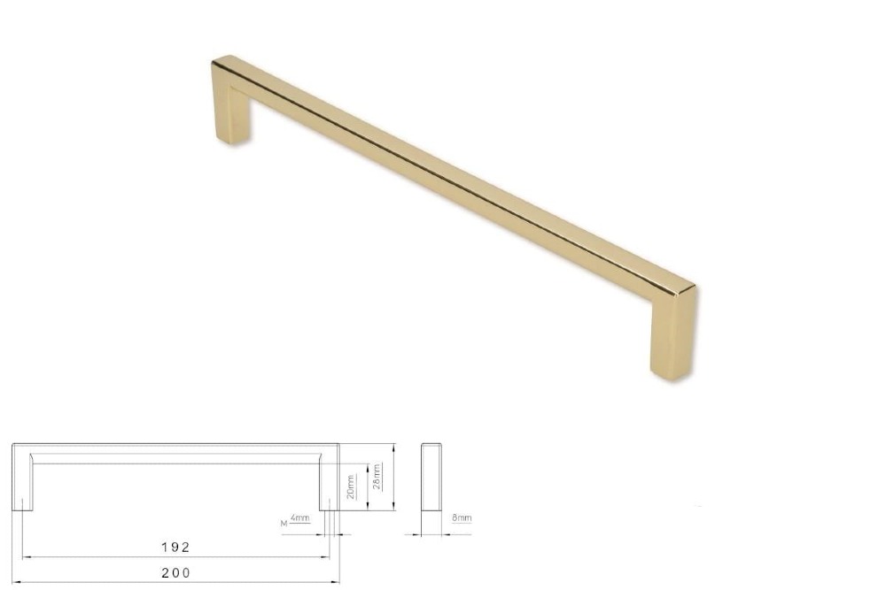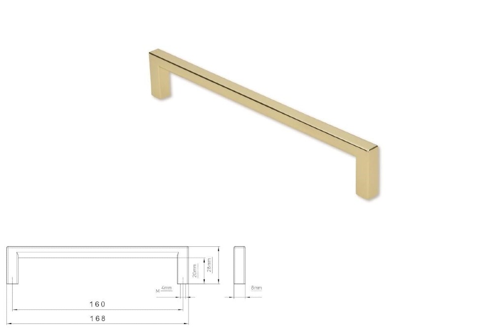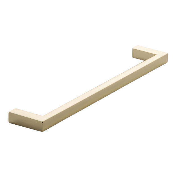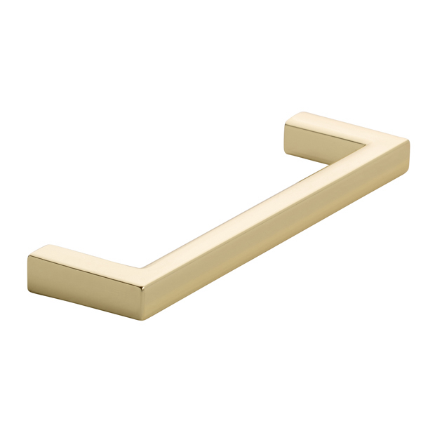 Prosty uchwyt meblowy w kolorze błyszczącego złota, z bardzo ergonomiczną rączką, przyokrągloną od strony wewnętrznej.