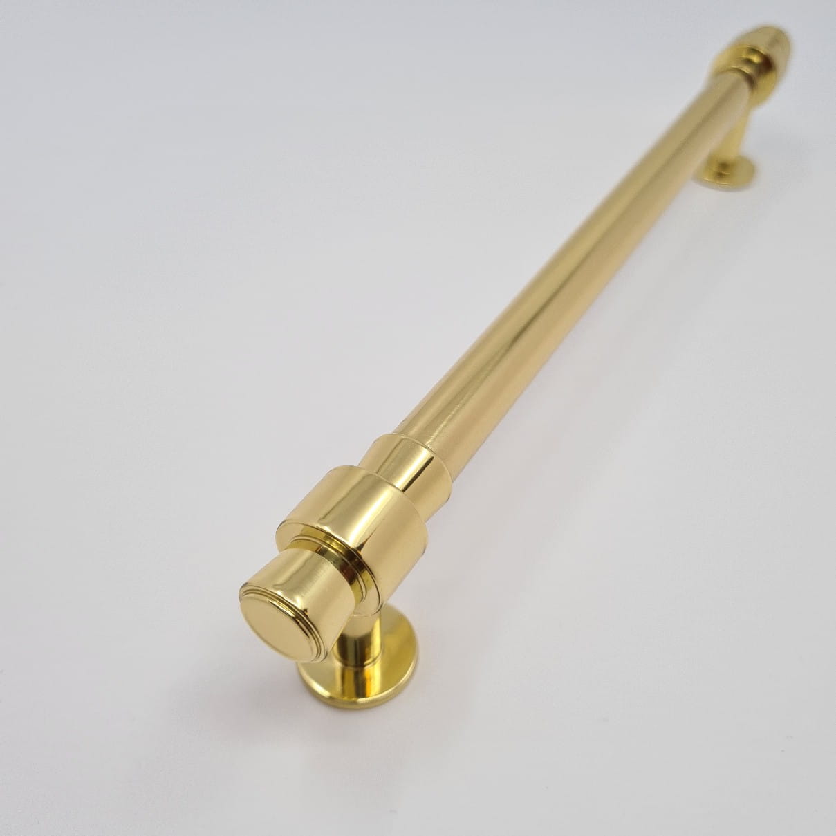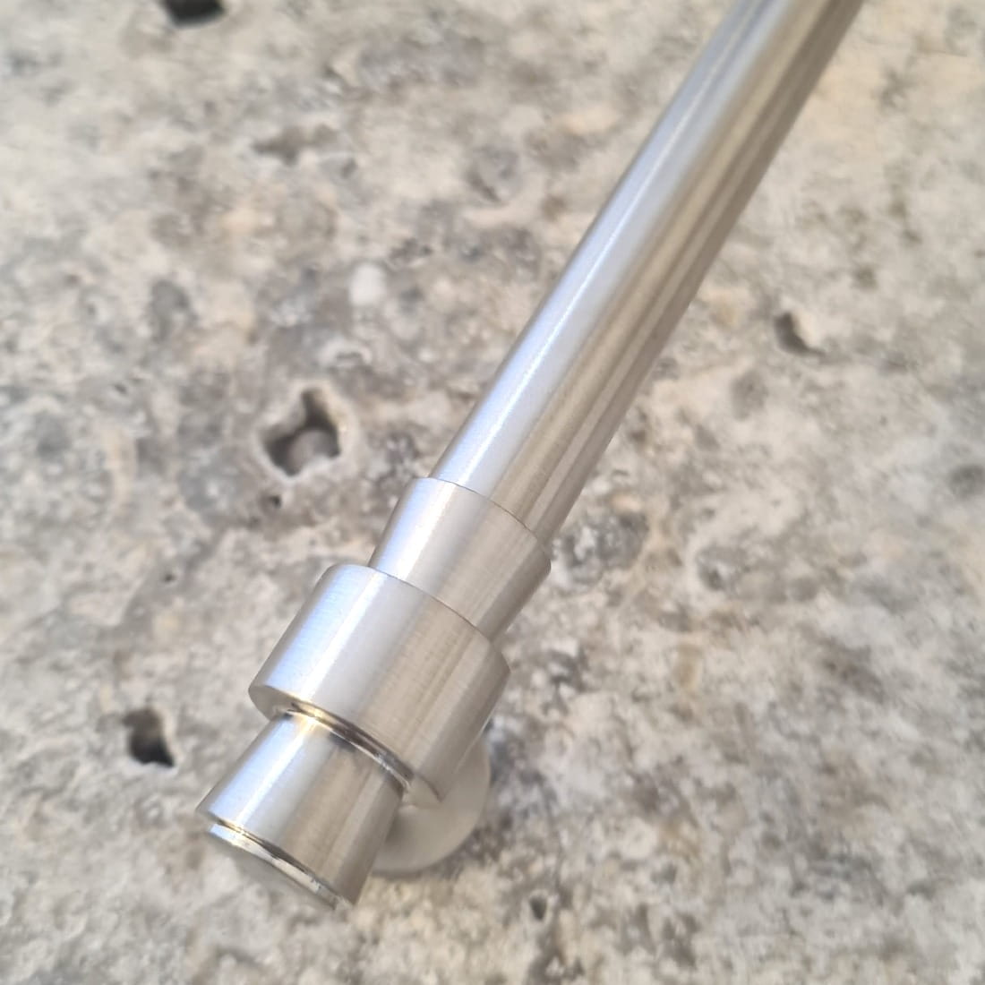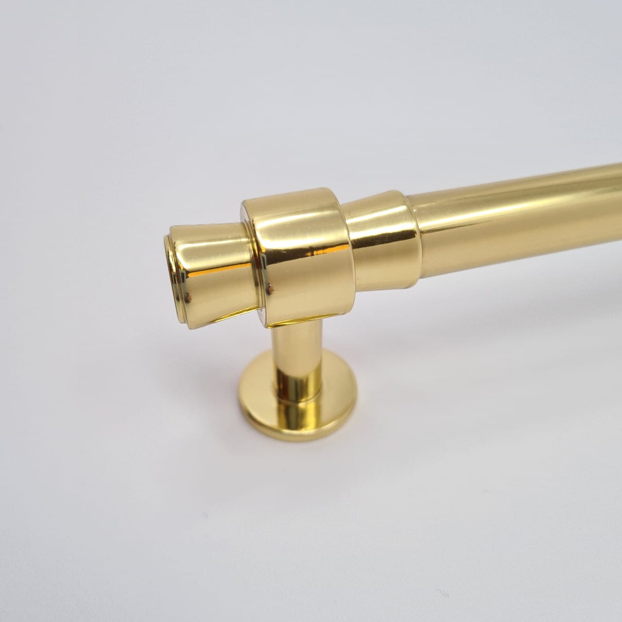 Uchwyt meblowy z przedłużonymi ramionkami w kształcie stożków. Wykonany z mosiężnej rurki o średnicy 12 mm. Istnieje możliwość wybrania wykończenia spośród 6 dostępnych kolorów oraz dostosowania długości lub rozstawu.