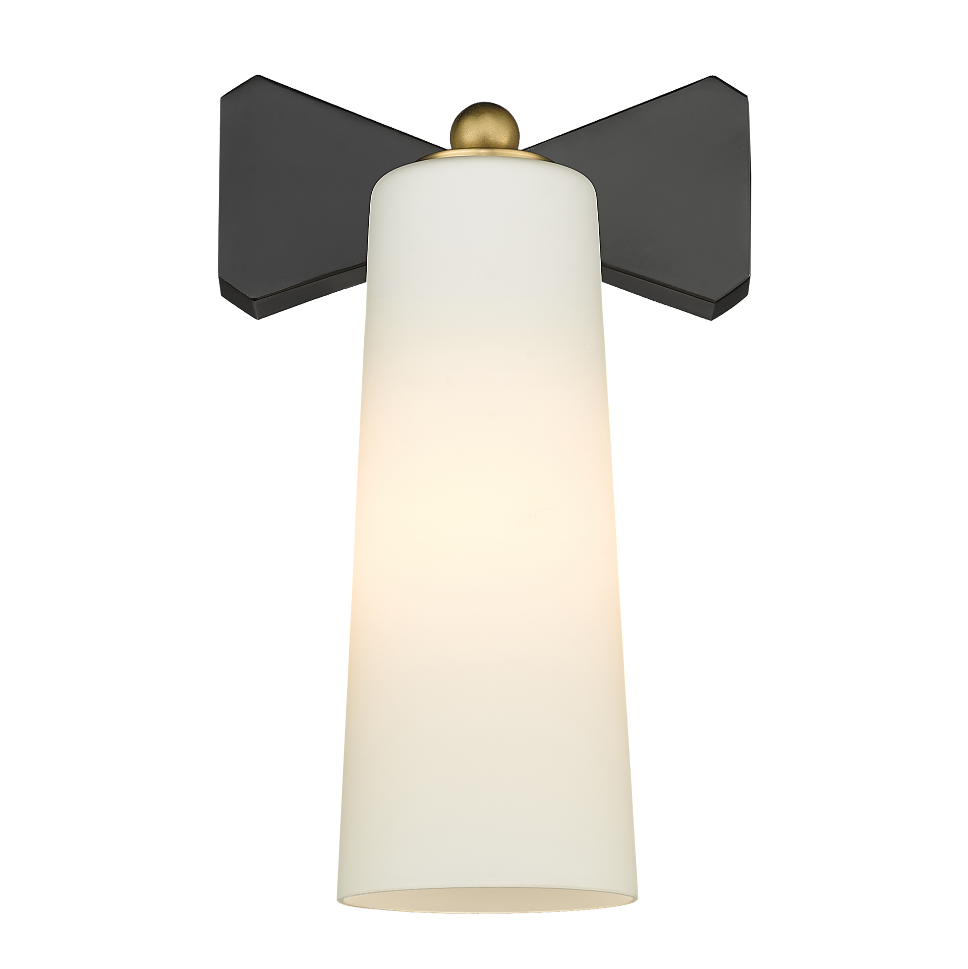 Kinkiet z elementem kokardy, kobiecy i elegancki. Opalowe szkło połączone ze czernią to zawsze udany duet.